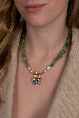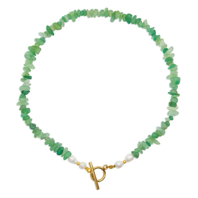 - Edelsteen, roestvrij staal en zoetwaterpareltjes.