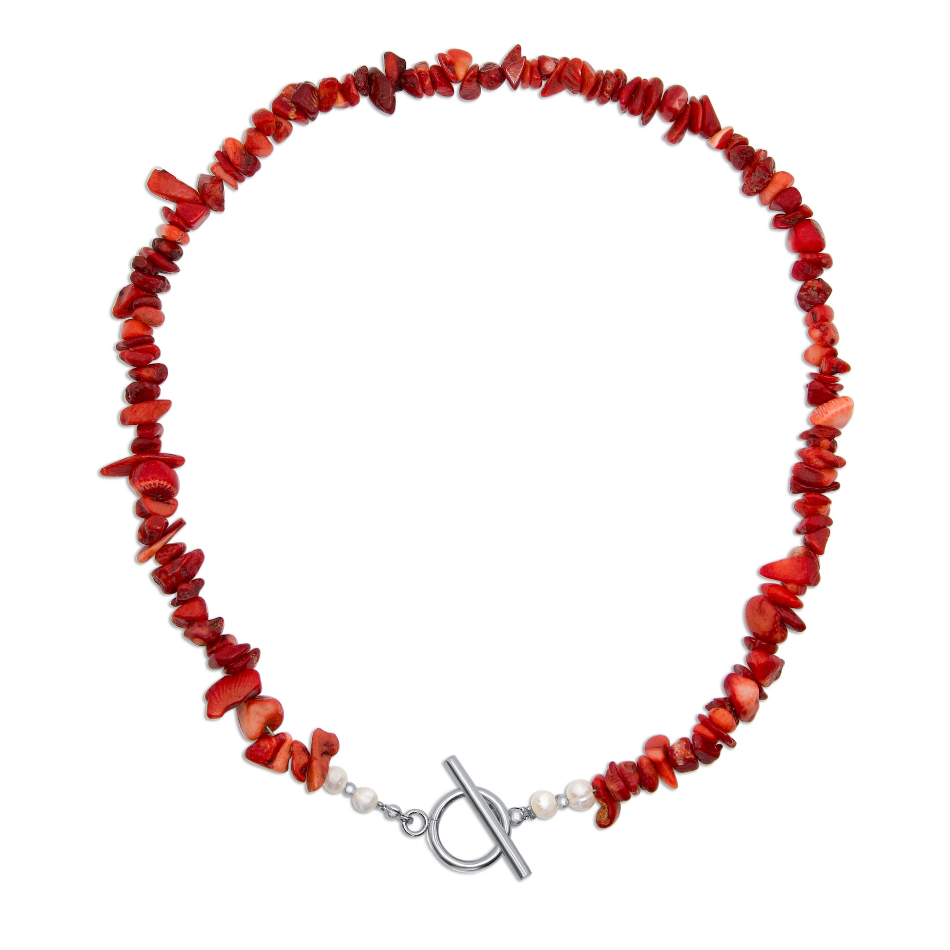 Een prachtige ketting gemaakt van rood koraal. Geproduceerd uit de koraalboom en bijna identiek aan bloed koraal.
