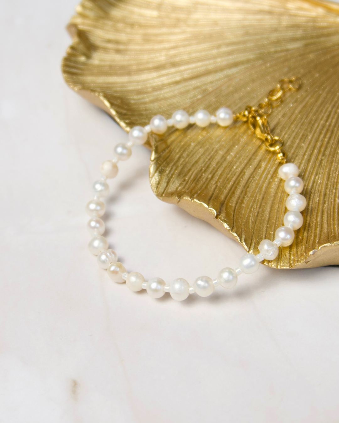 Dit verfijnde armbandje met 5 mm zoetwaterparels straalt pure elegantie uit. De natuurlijke glans van de parels gecombineerd met roestvrijstaal maakt dit sieraad een tijdloze klassieker die moeiteloos met elke look meegaat. Perfect voor dagelijks dragen, maar ook prachtig in een gelaagde armbanden stack.
